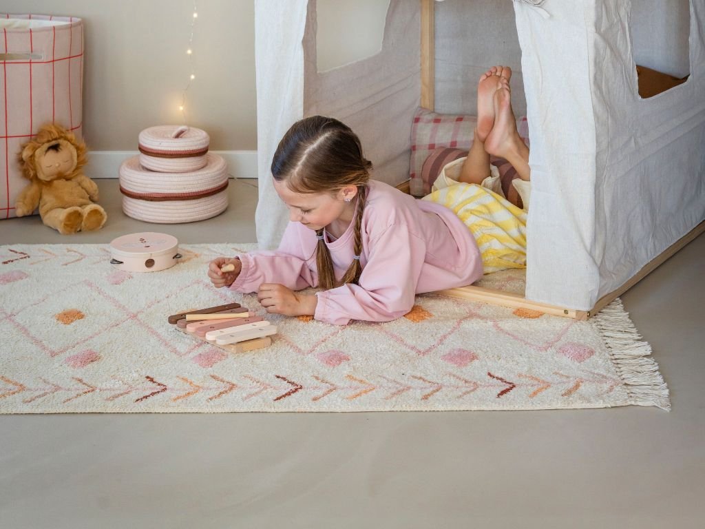 Covor cu model ISA crem pentru camera copiilor
