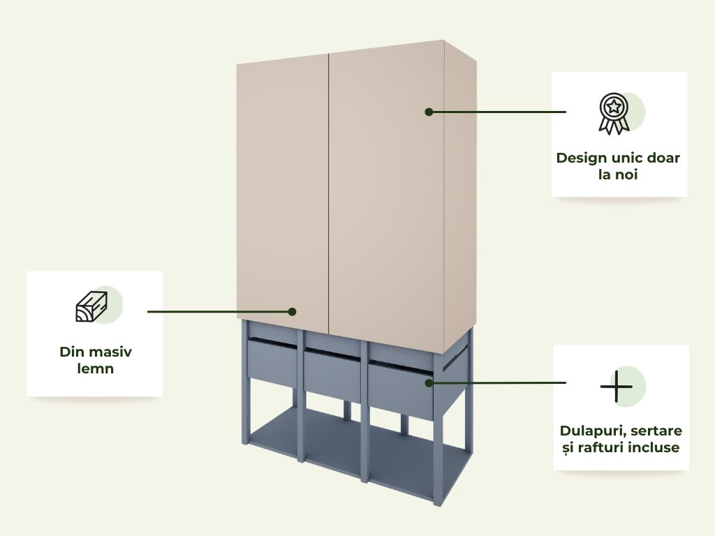 Trăsătură: | Cu sertare, Cu rafturi, Cu șină pentru haine |