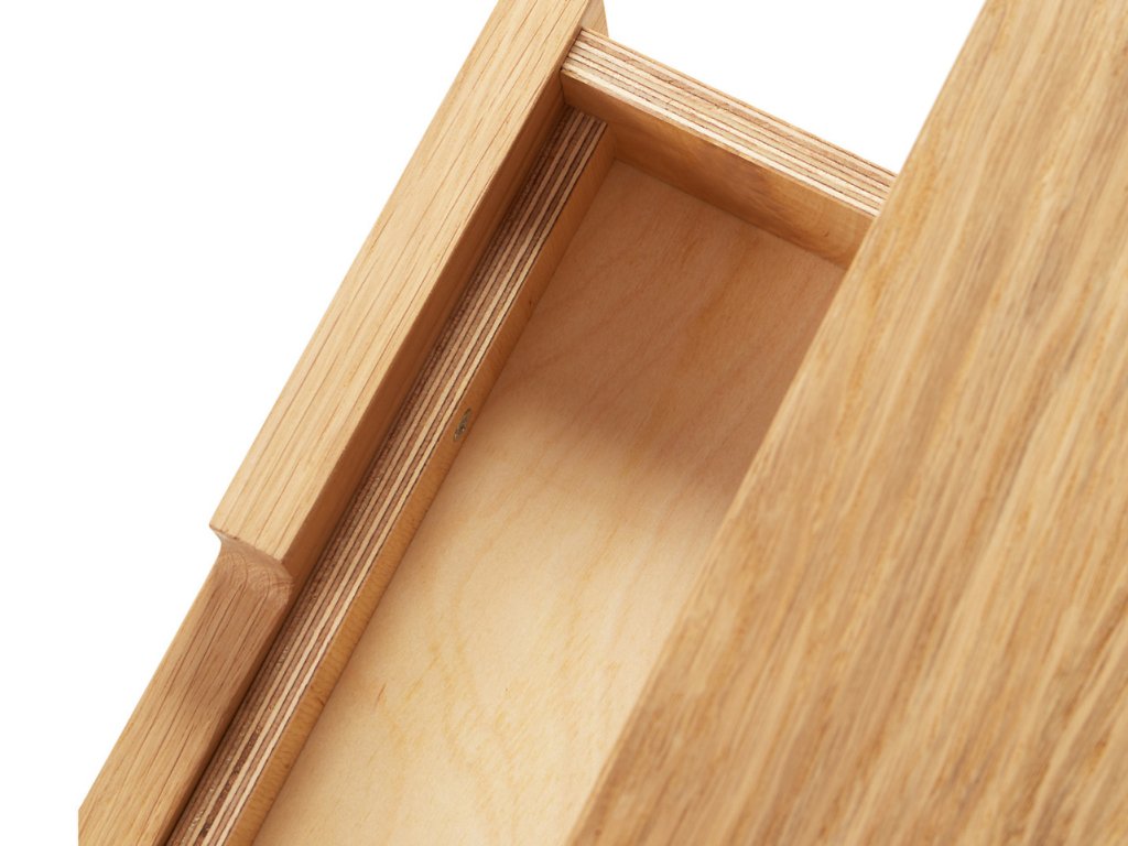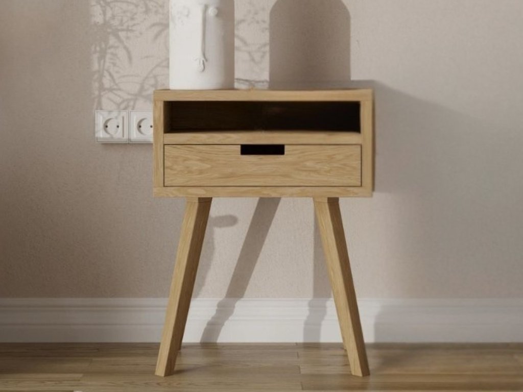Material din prima varianta: | corpul mobilierului, fata sertarului si picioarele sunt din lemn masiv de stejar |