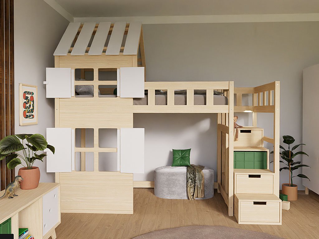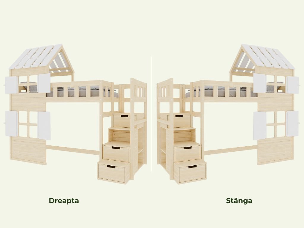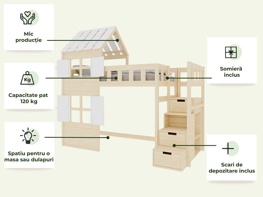 Trăsătură: | Cu un sertar, Cu pat suplimentar, Cu spatiu de depozitare, Cu scari |
