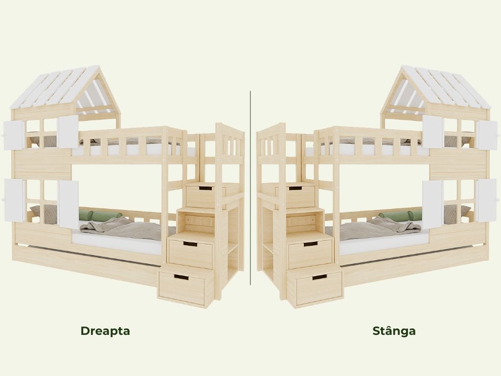 Trăsătură: | Cu un sertar, Cu pat suplimentar, Cu spatiu de depozitare, Cu scari |