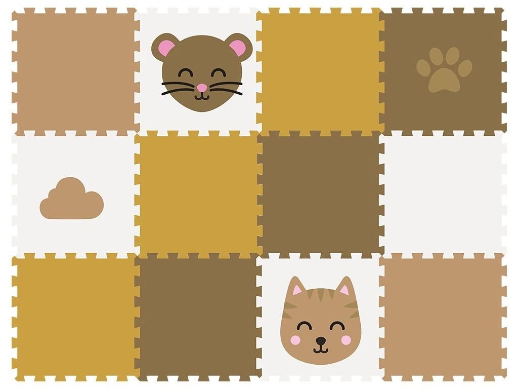 Setul include: | 12 piese de podea (3 buc. aurii, 2 buc. maro, 2 buc. maro închis, 1 buc. nor, 1 buc. șoarece, 1 buc. pisică, 1 buc. labă) |