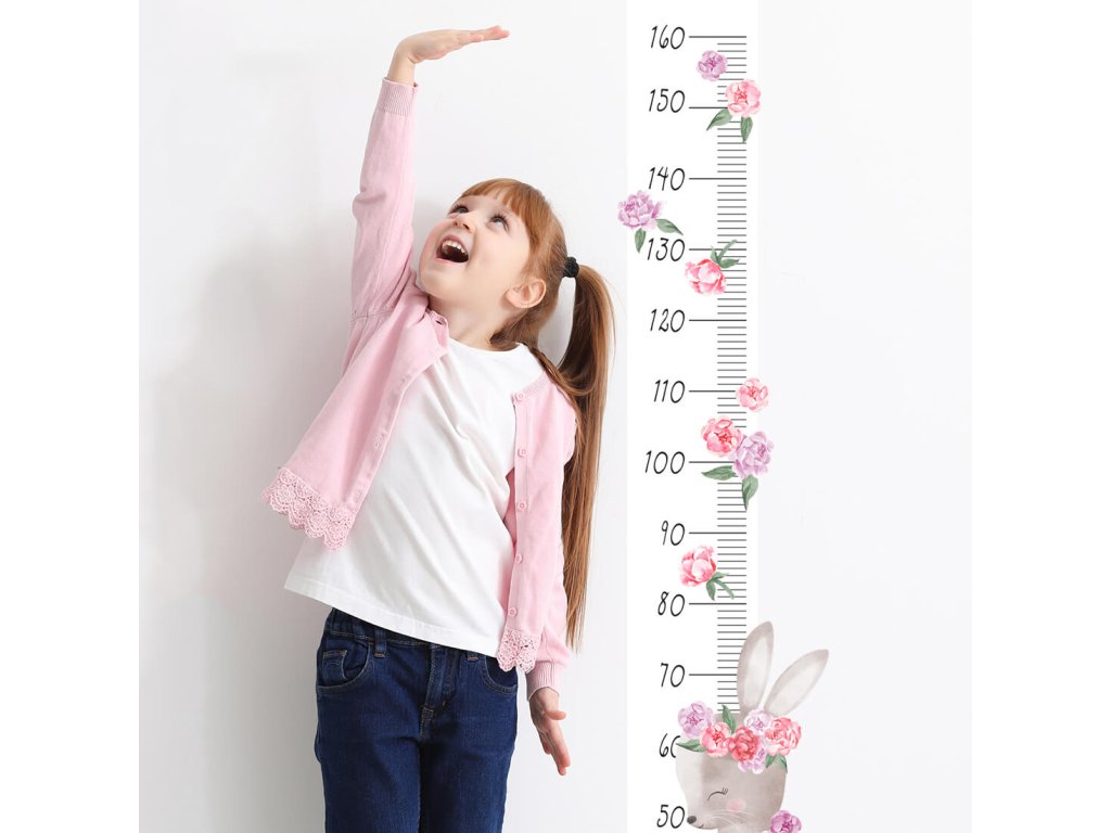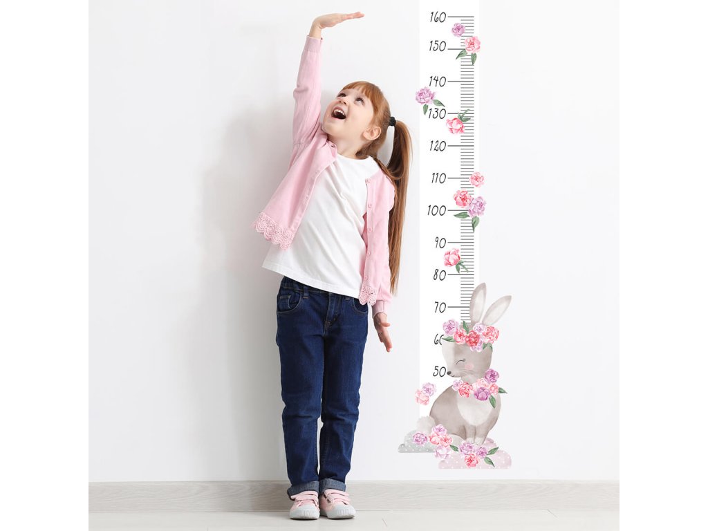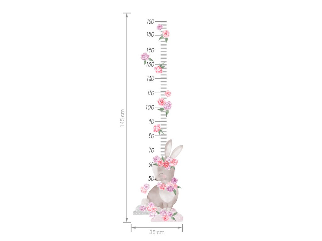 Metru autoadeziv de perete IEPURAȘ pentru camera copiilor ROZ