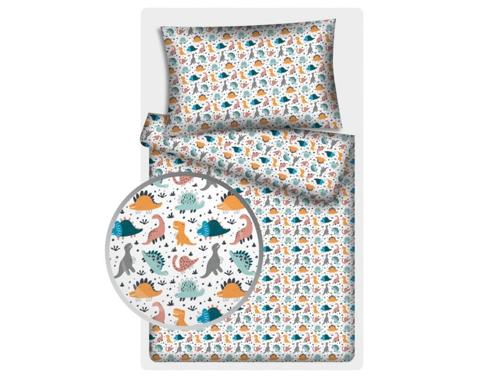 Lenjerie de pat pentru copii, din bumbac, DINOZAUR, pentru pat 1 persoană