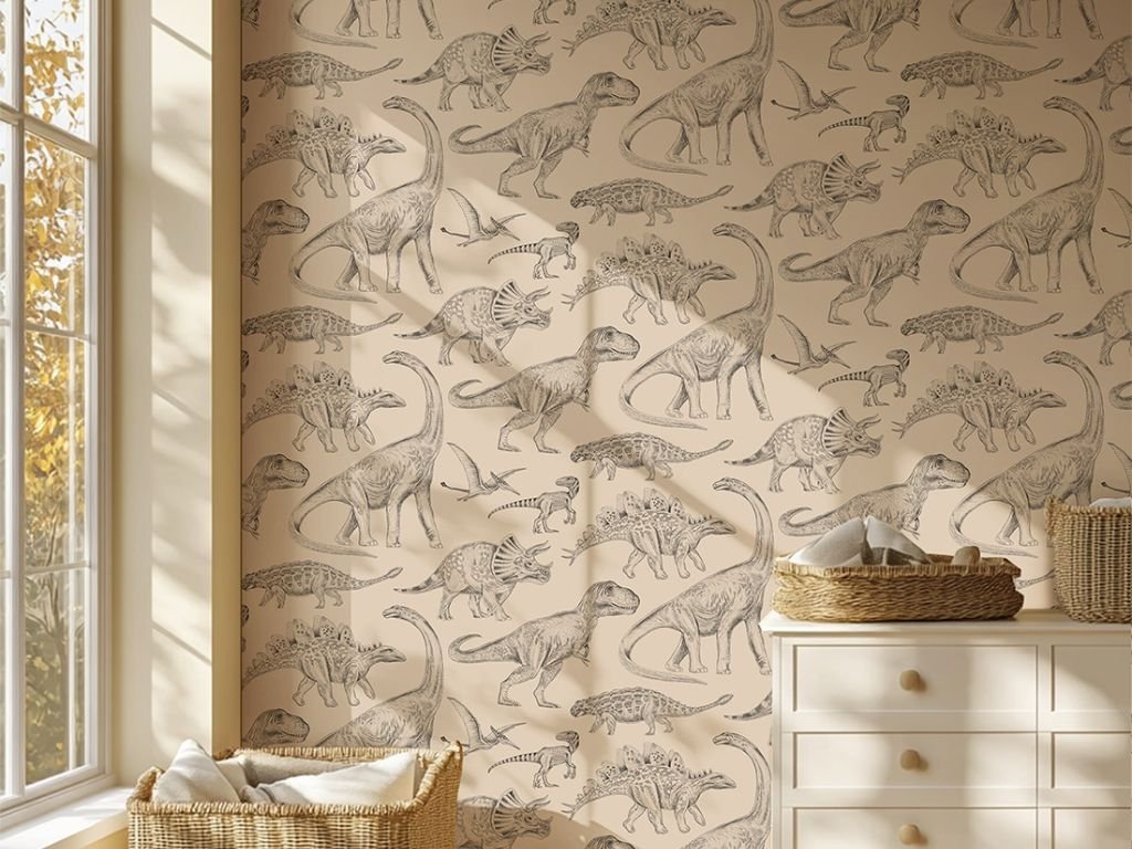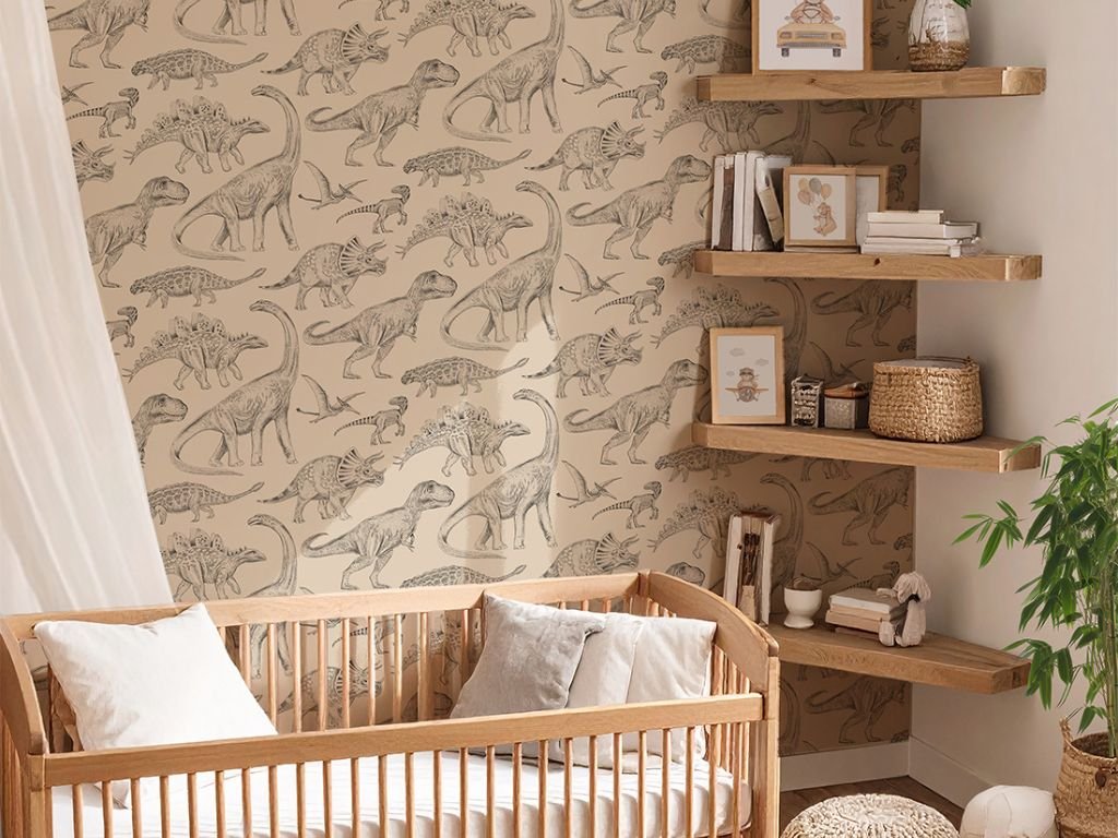 Tapet lavabil pentru copii cu DINOZAURI maro