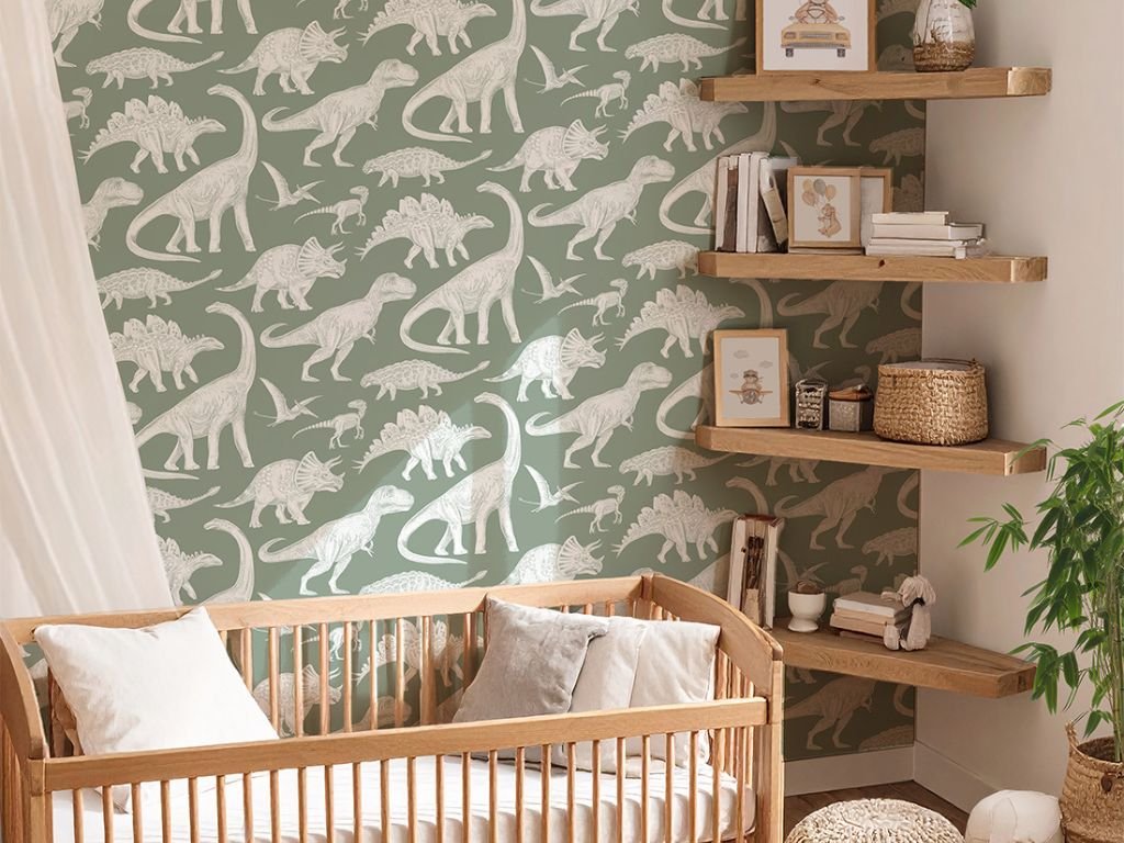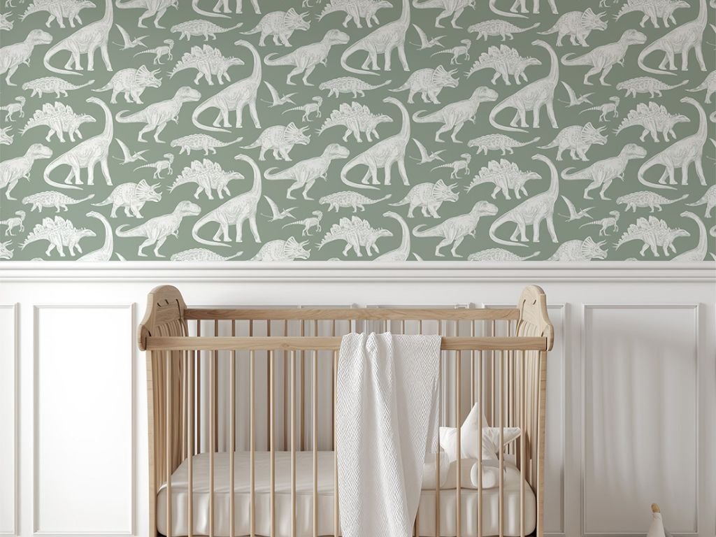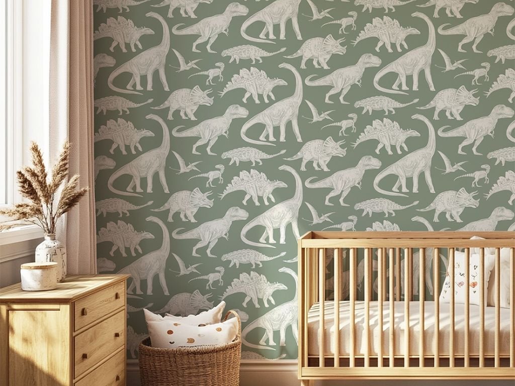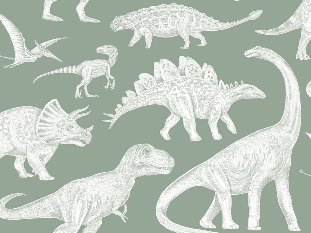Tapet lavabil pentru copii cu DINOZAURI verde